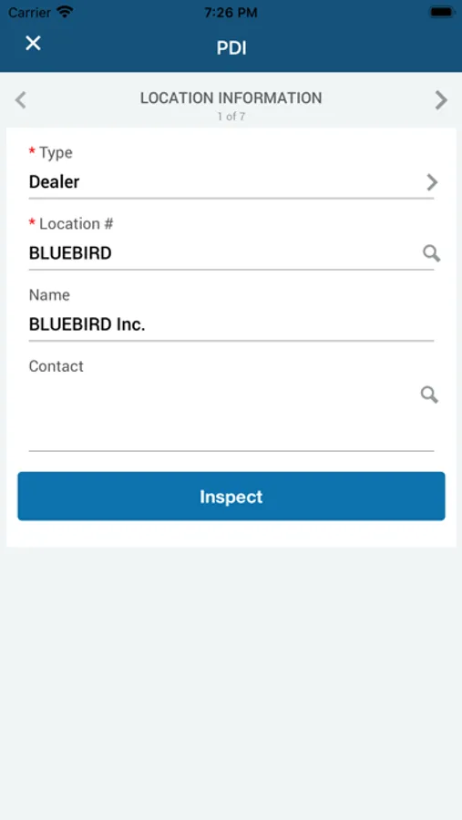 Blue Bird Bus Inspections application allows dealers and manufacturer to mark unit inspection points as Pass/Fail/NA and to document with photo attachments