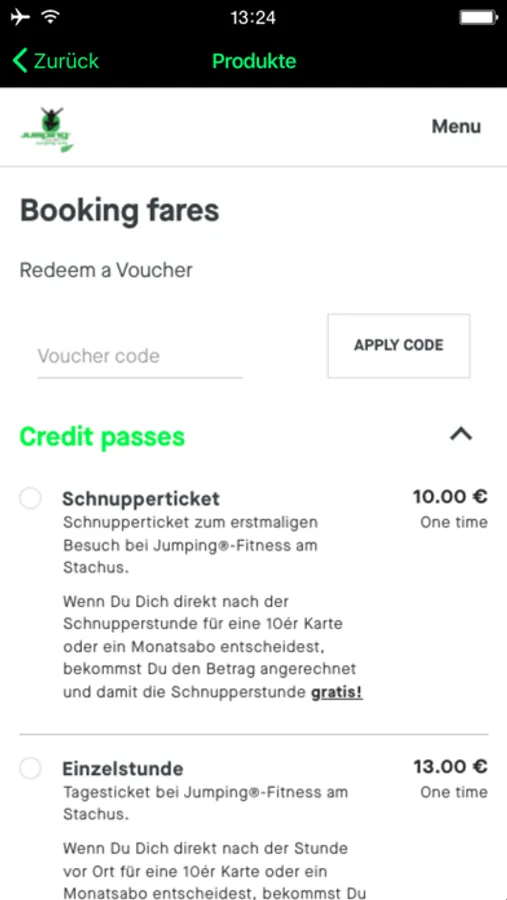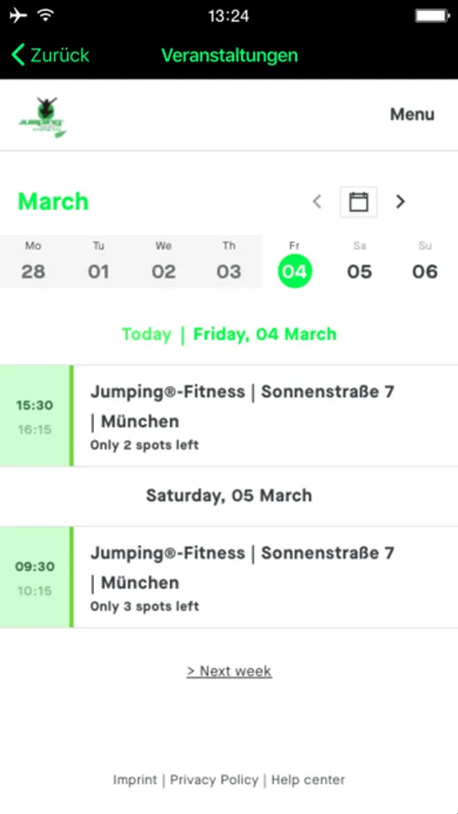 Die Kursbuchungsapp vom offiziellen Vertriebspartner von Jumping Fitness.