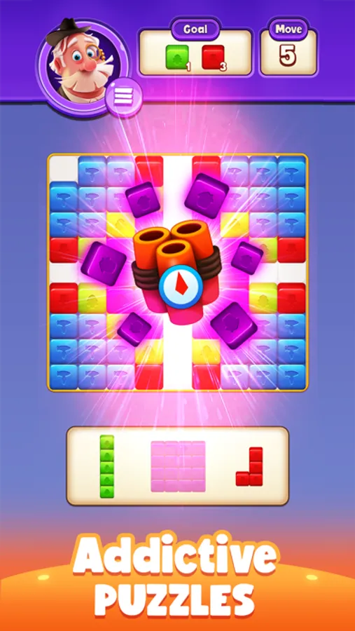 Match blocks to complete rows and columns to get them removed. Keep removing blocks to achieve your targeted colored blocks.