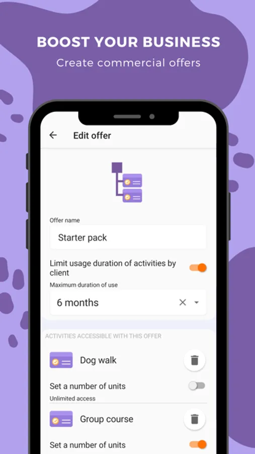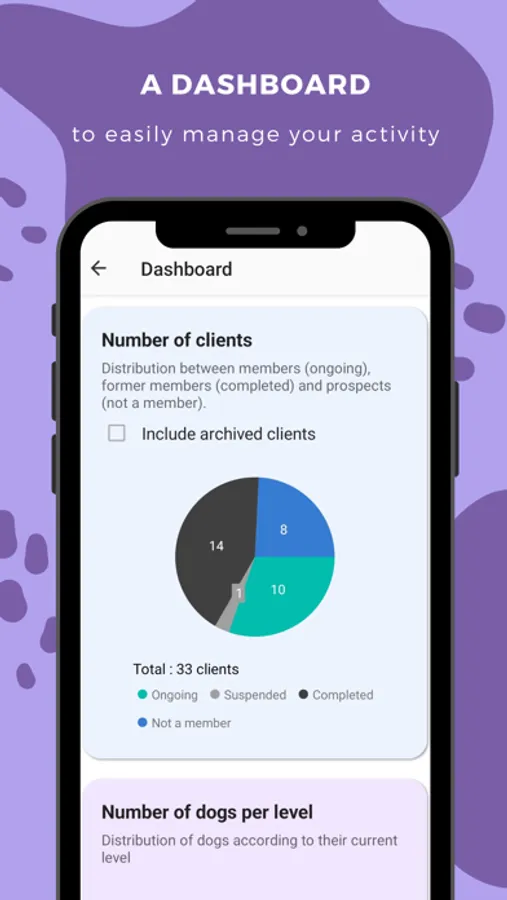 Create detailed customer profiles, including personal info, contact details, dog-specific notes, education levels and behaviors. BaltoPro manages their subscriptions, so you can know their remaining classes in one click, activity by activity.
