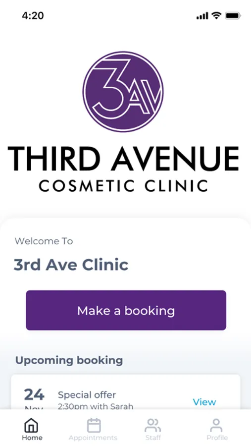 The 3rd Ave Clinic app makes booking your appointments and managing your loyalty points even easier. You're just a few taps away from feeling good and looking great!