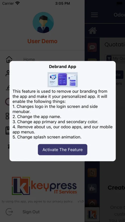 This feature is used to remove our branding from the app and make it your personalized app. This is a paid feature. It will enable the following things: