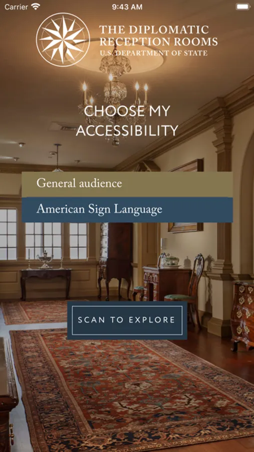 The app allows you to discover artworks in the Diplomatic Reception Rooms. From the app, use the camera to scan the artworks around you and get a description in nine languages, with text-to-speech audio, and American Sign Language (ASL)