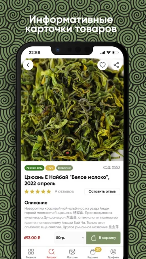 -Уникальные инструменты оценки чая. Составляйте диаграмму вкусов и заполняйте дескрипторный состав прямо в приложении;