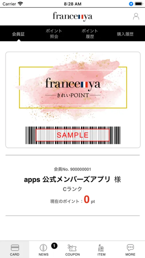 「france-ya」アプリは、対象店舗にて会員証としてご利用いただけるだけでなく、最新のお知らせが届くなど、便利にご利用いただけるアプリです。