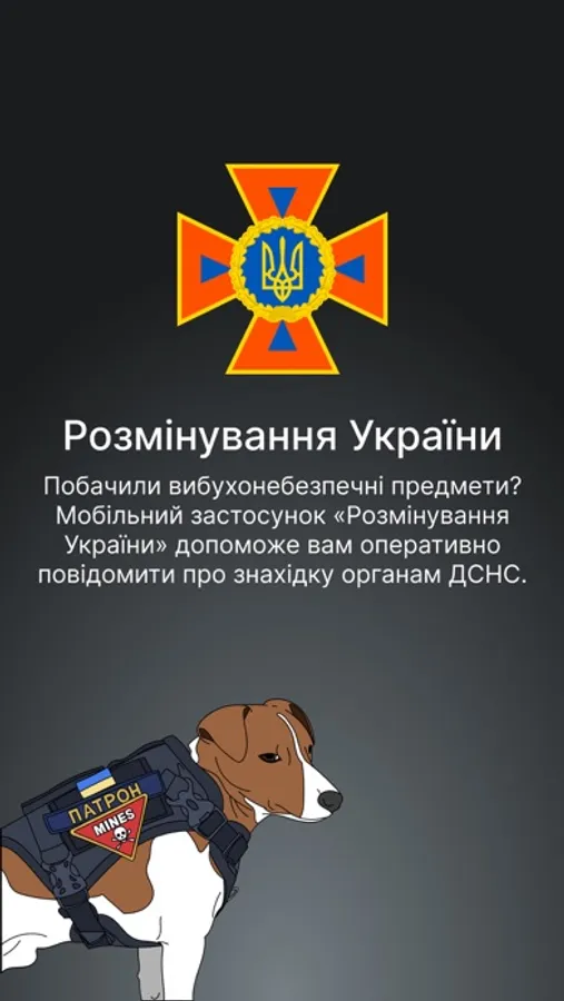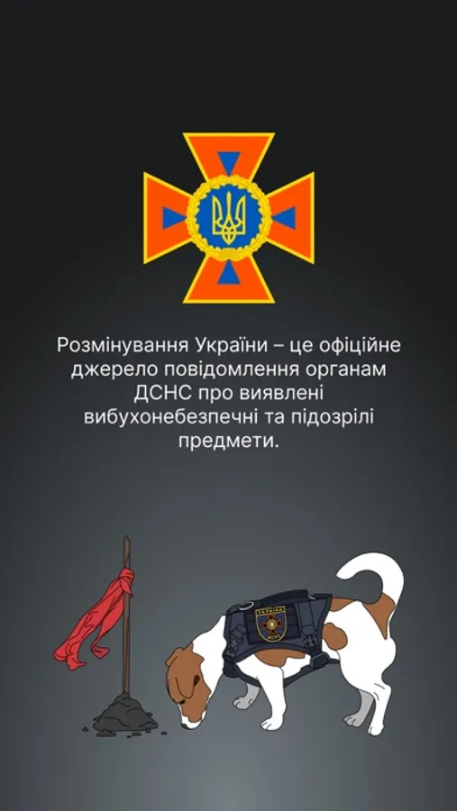 Мобільний застосунок спрямований на створення інформаційно-комунікаційної платформи між органами ДСНС та громадянами, направленої на вжиття заходів щодо розмінування території України.