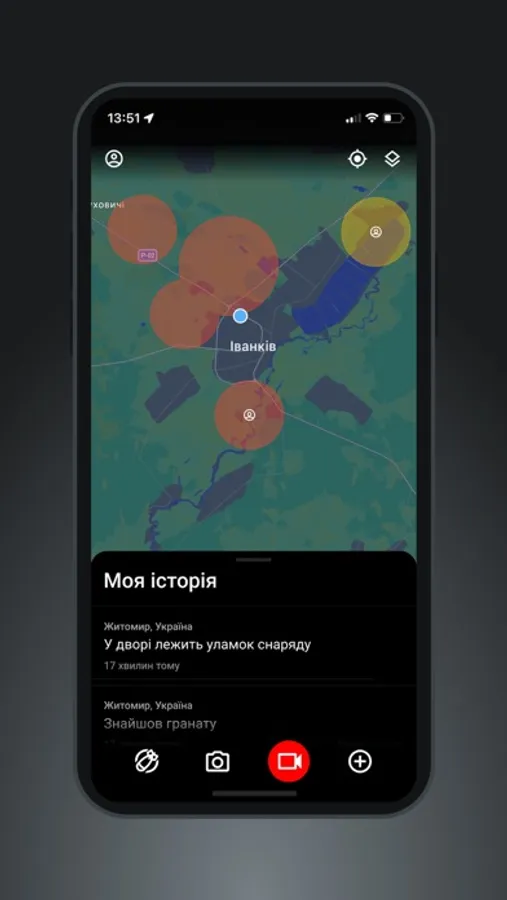 - отримувати сповіщення щодо небезпечних зон, які знаходяться поруч з Вами;
