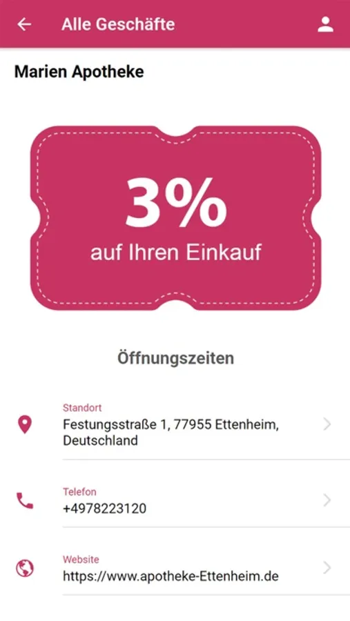 Die EttenheimCARD ist ein Shopping- und Bonusprogramm von Ettenheimer Geschäften. In der EttenheimCARD App findest Du Infos aus Ettenheim und der daran teilnehmenden Geschäfte und welchen Einkaufsvorteil Du beim Shoppen in diesen Geschäften erhältst. Einige Geschäfte bieten auch zusätzliche Features an, wie z.B. Terminbuchung, Tischreservierung oder Lieferservice. Lass Dich überraschen. Daneben findest Du regelmäßige Angebote, Aktionen und Events in Lahr und der teilnehmenden Geschäfte.