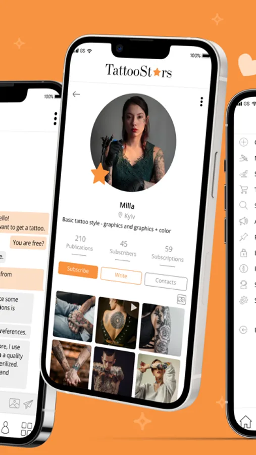Win in-app tattoo battles – earn valuable prizes, with a prestigious TattooStar status badge. Find a team or teammates for your studio. Spot a guest base for your world tour. Simply create contacts and up your grade.