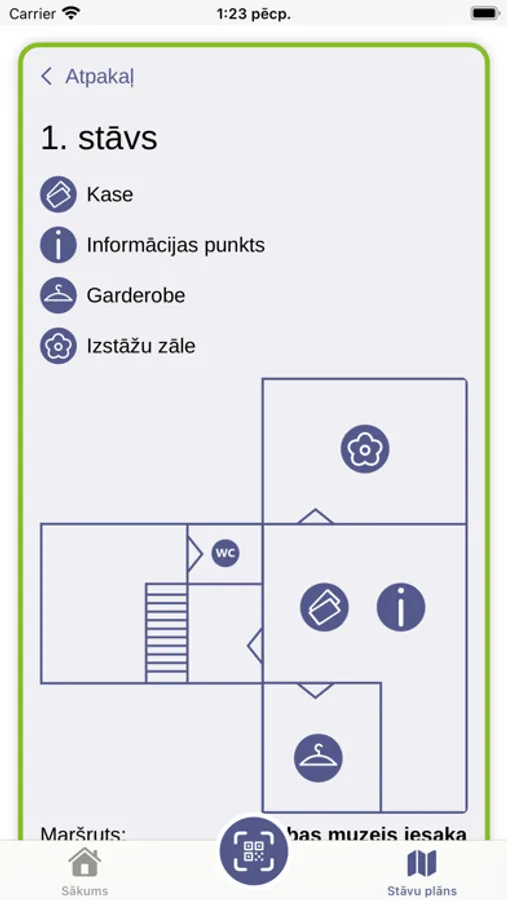 Lai piekļūtu lietotnes saturam, jāskenē kvadrātkodi muzeja ekspozīcijās.