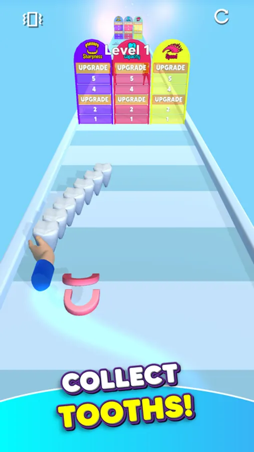 Gather the teeth on the way into the palate. Improve your palate with different upgrades from the doors on the way.