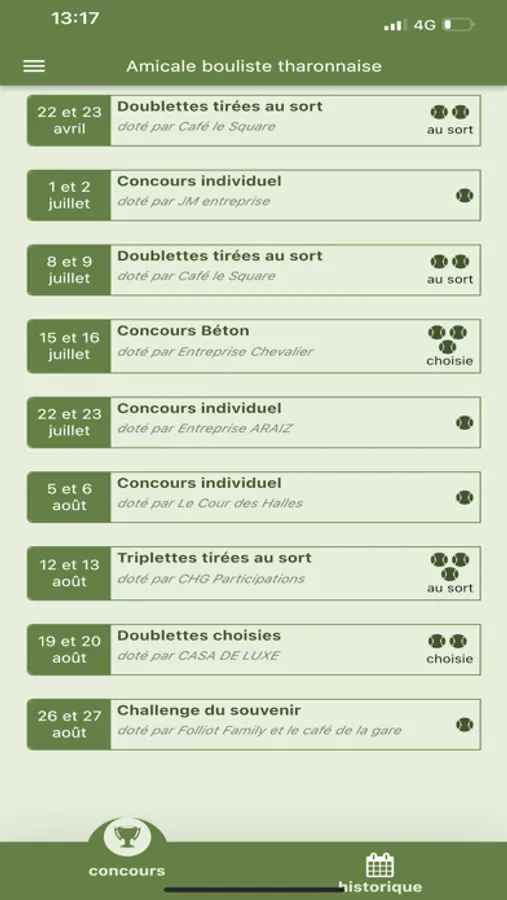 Vous pourrez suivre l'avancée des concours et suivre les résultats des phases finales du dimanche.