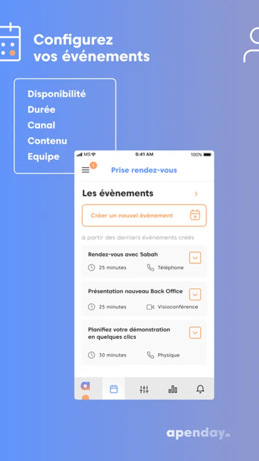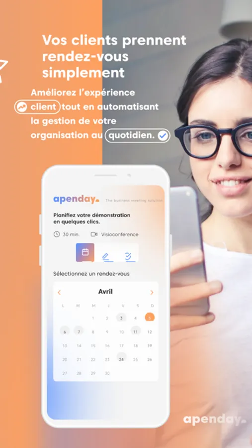 Disponible 24h/24 et 7j/7, Apenday propose une expérience de prise de rendez-vous unique et ultra personnalisable.