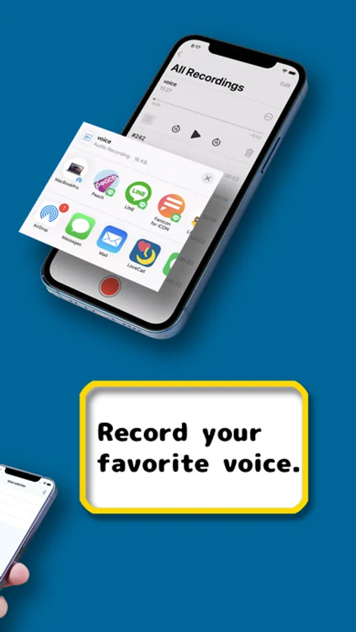 For voice memos, select the sound source you want to share and tap [...] in the upper right corner. Tap [Share], [Other], [Edit], and register [Love Call] from the candidates, then [Done]. Tap [Love Call] in the item, and the sound source you want will be shared.