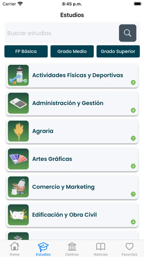 Oferta educativa de Formación Profesional de la Comunidad Autónoma de La Rioja distribuida por niveles y centros educativos