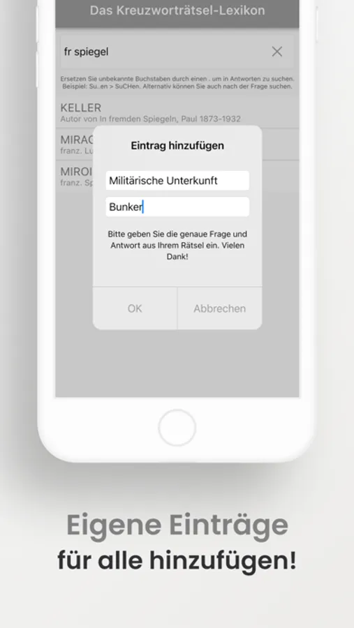 Mit über einer Million Datensätzen bietet das Lexikon die Möglichkeit tausende Kreuzworträtsel-Lösungen zu durchsuchen. Ganz bequem von ihrem Smartphone, ohne die Notwendigkeit einer Internetverbindung und natürlich werbefrei!