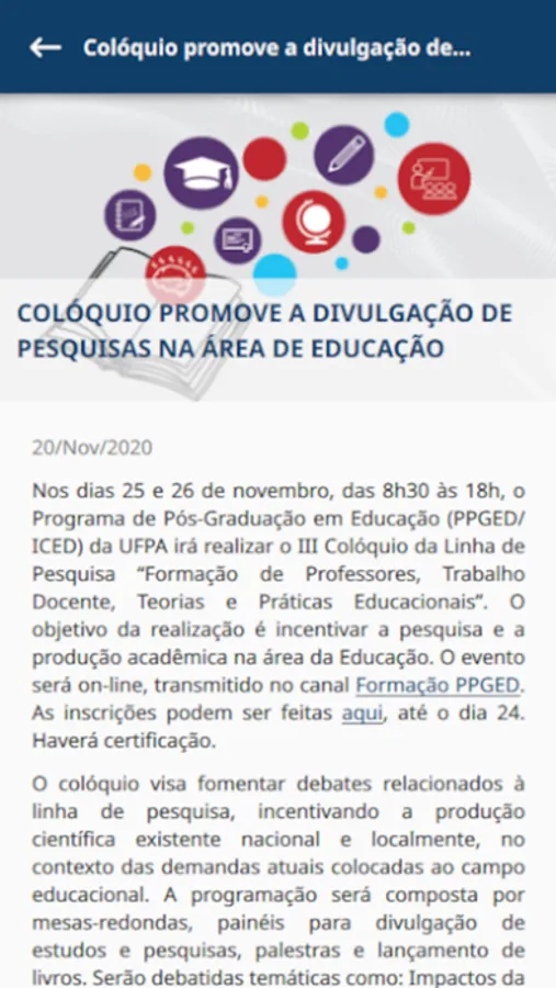 - Notícias e oportunidades anunciadas no Portal da UFPA;