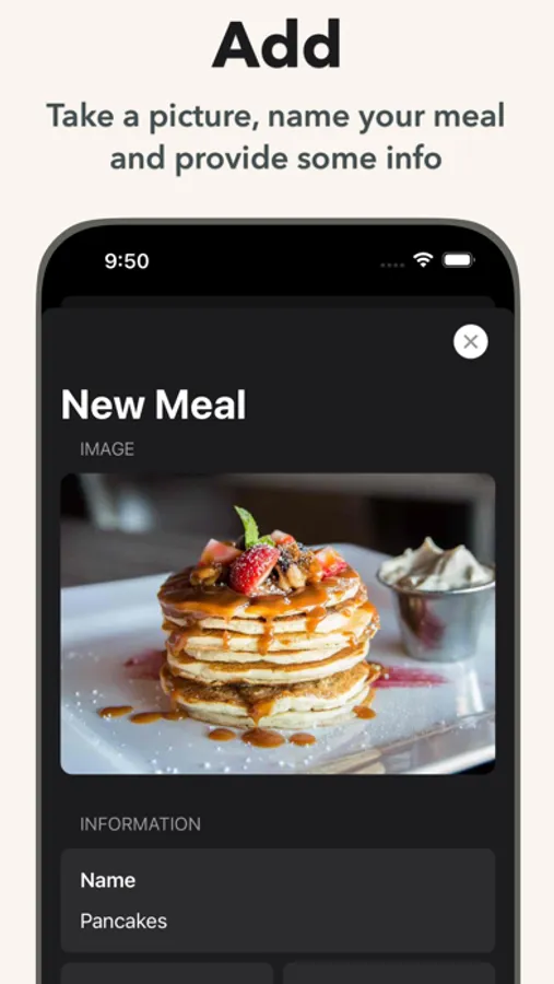 Take a picture, name your meal and provide some info.
