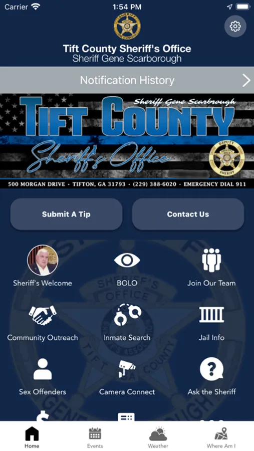 The Tift Sheriff’s Office mobile application is an interactive app developed to help improve communication with area residents. The Tift Sheriff App allows residents to connect with the Tift Sheriff’s Office by reporting crimes, submitting tips, and other interactive features, as well as providing the community the latest public safety news and information.