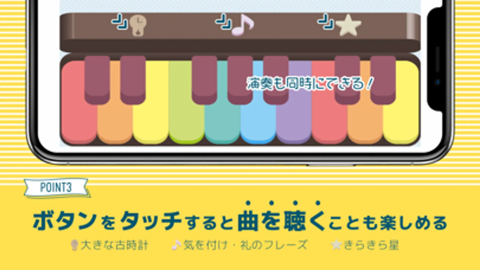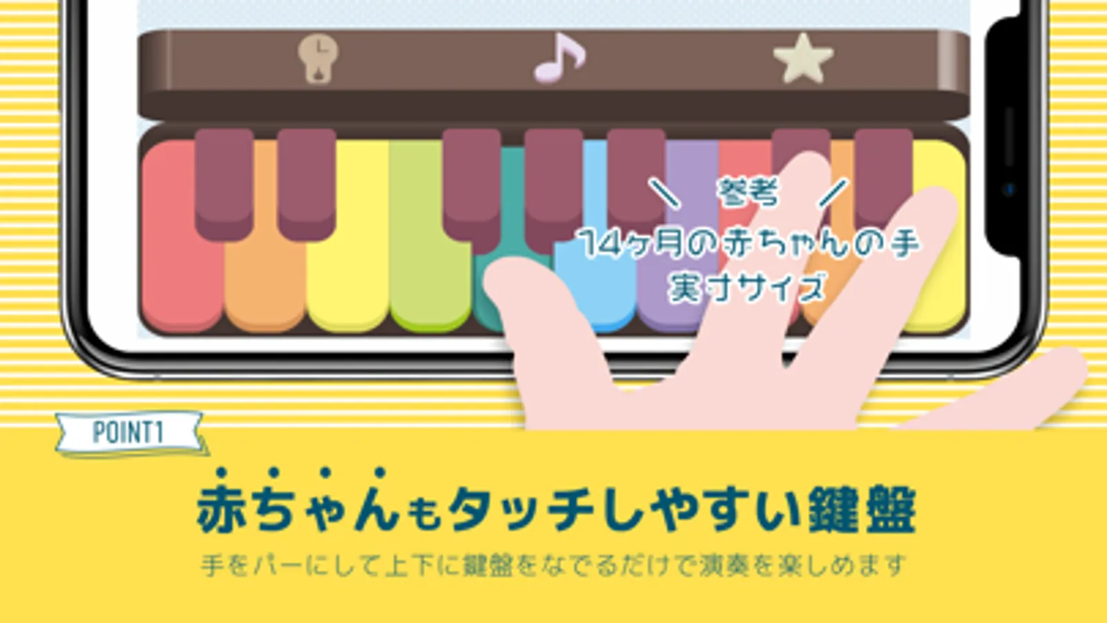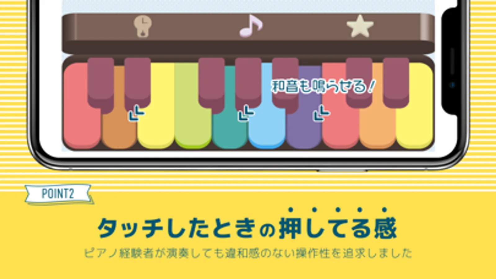 このアプリは、軽く鍵盤をなでるだけでも演奏を楽しむことができるので、はじめての音楽体験に最適です。