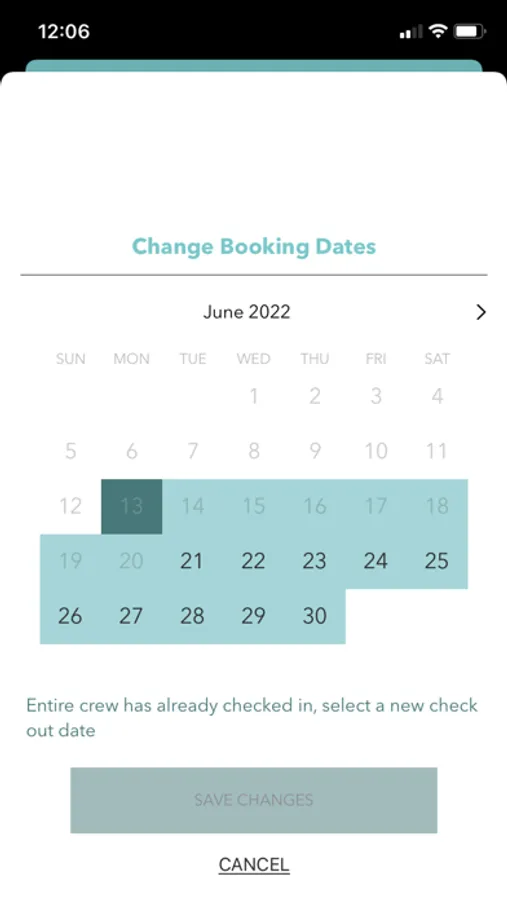 • ‘One touch’ actions for cancelling an entire booking or an individual crew member in the case of an early check out.