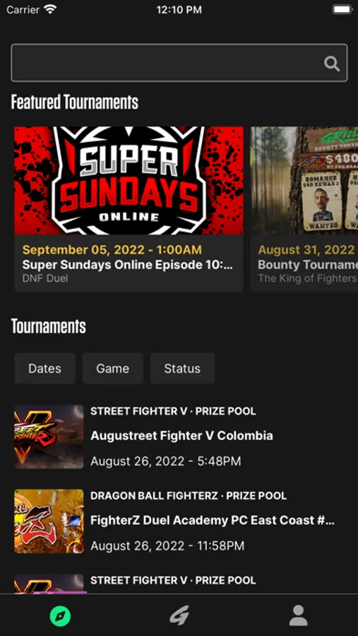 • Browse and search tournaments
