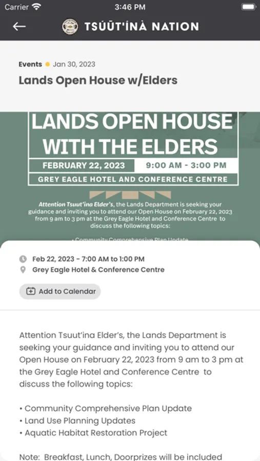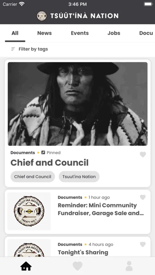 - View personalized feed supplied by the Band Office in a chronological order or by category: