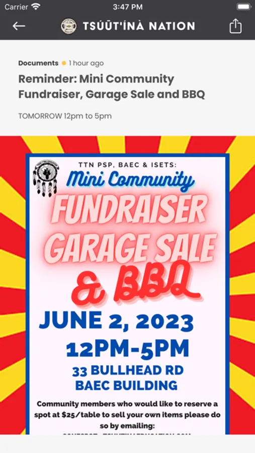 - Receive push notifications from the Band Office at a moment's notice for: