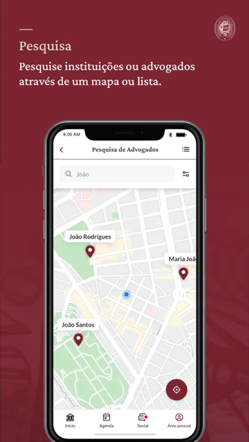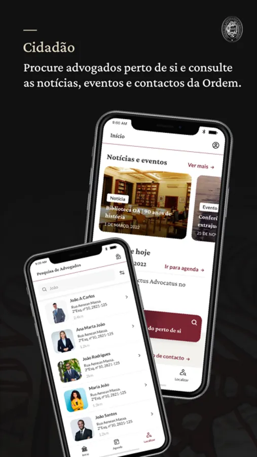 Com esta aplicação qualquer cidadão pode localizar um Advogado através de geo-localização, e aceder aos contactos do Conselho Geral e Conselhos Regionais da Ordem, e também enviar-nos uma mensagem através do formulário disponível. Caso pretenda encontrar instituições na área da Justiça, tais como Tribunais, Conservatórias do Registo Civil e Predial, Notários, ou outros, pode pesquisar os respectivos contactos na aplicação em Instituições.