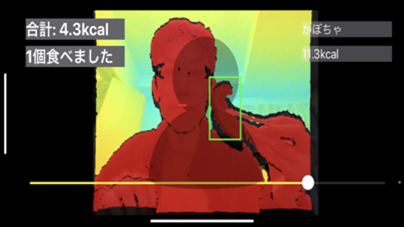 深度情報から食事のカロリー量を推定します。