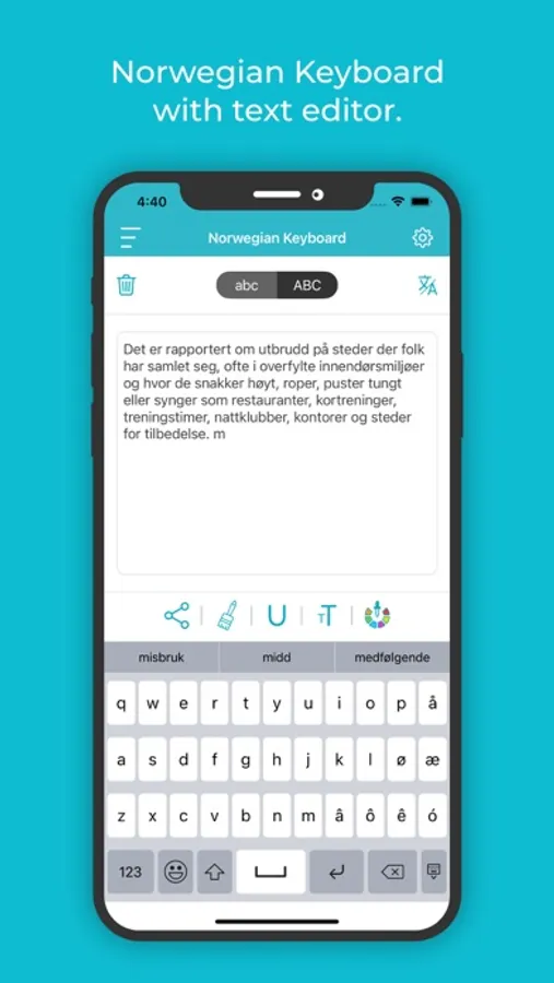 • Changing the font, the colour, underlining features inbuilt in this Norwegian keyboard iOS.