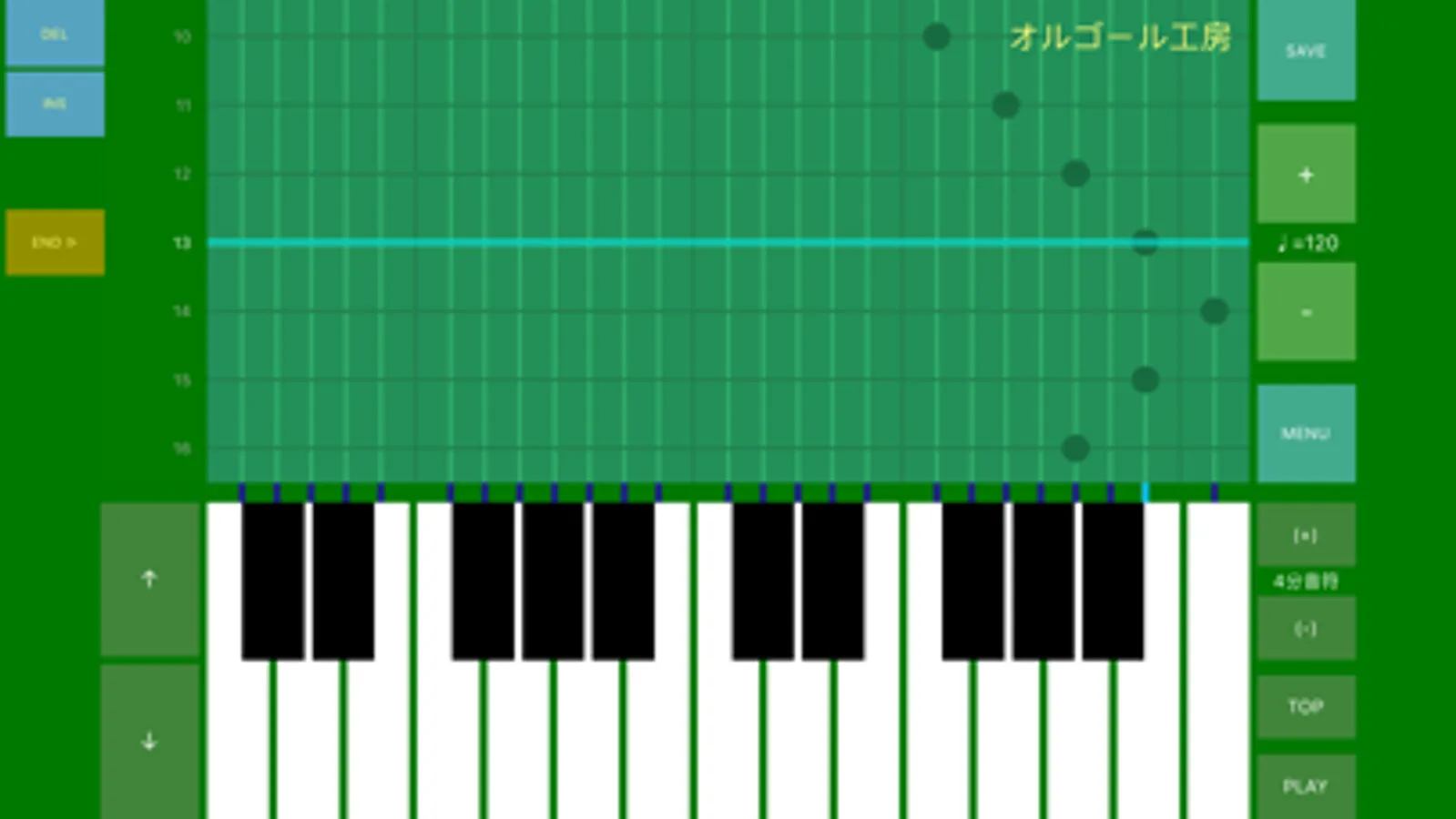 鍵盤を押すとその音が鳴り、マークが付き、1ラインスクロールします。