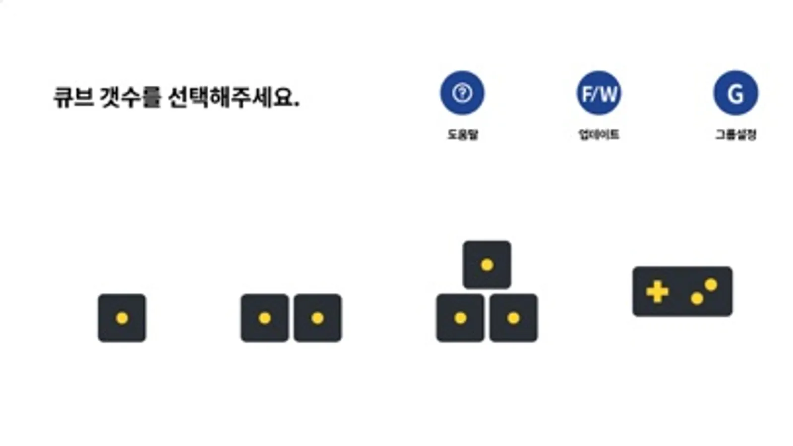When the cube is successfully connected to the smartphone, you can distinguish each cube's LED color, specifically in the following order: red, green, blue, cyan, magenta, yellow.