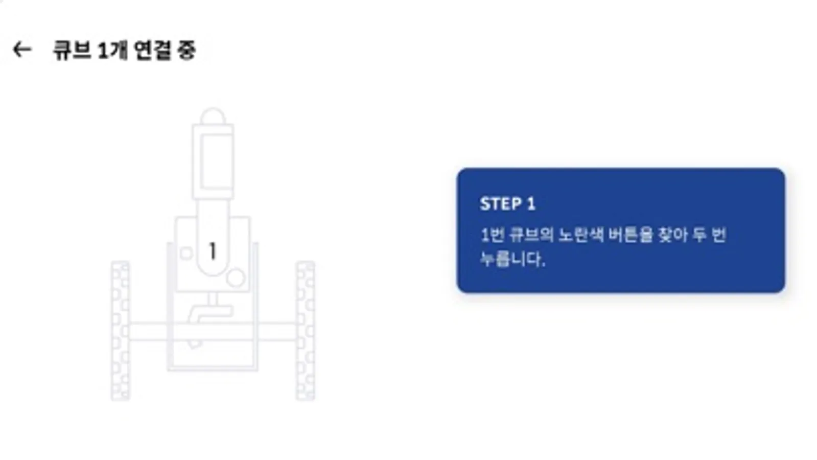 Check the first cube on the app screen. Press the power button on the assembled robot in the order shown on the app screen. When the first cube connects successfully with the smartphone, a pairing signal and beep will sound.