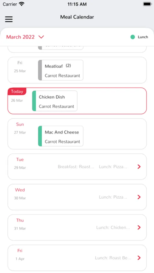 View food calendar