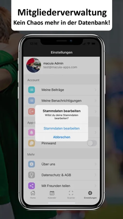 App sofort kann jeder seine Daten jetzt selbst über die App pflegen.