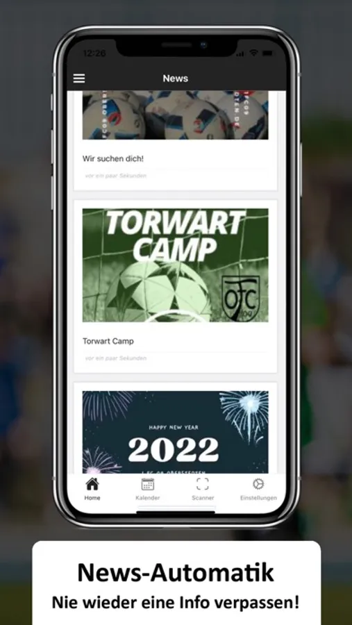 Weiterhin landen alle News, Termine, Fotos, Social-Media-Inhalte und Infos rund um den gesamten Verein direkt in deiner Hosentasche.