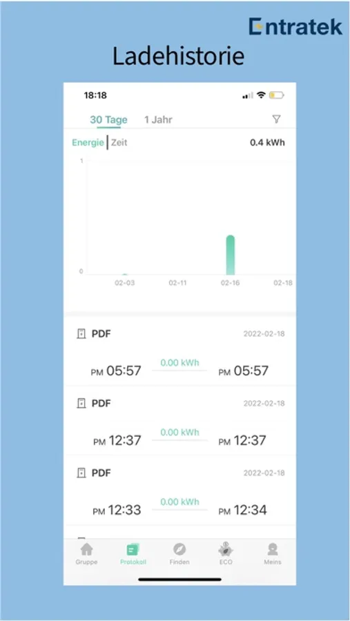 Die Entratek APP ist eine APP zur Verwaltung von EV-Ladestationen für Haushalte, WEGs und kleine Unternehmen, die die Verwaltung von Ladepunkten vereinfacht. Mit der Entratek-App können Sie Entratek-Wallboxen und Ladestationen einfach und intelligent überwachen und steuern.