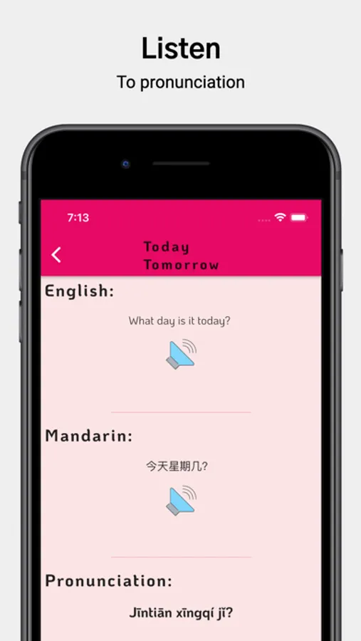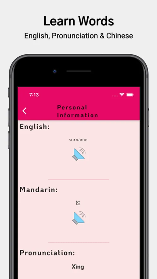 • In every lesson, you can listen to the Chinese word pronunciation as well as see Chinese word in english language.