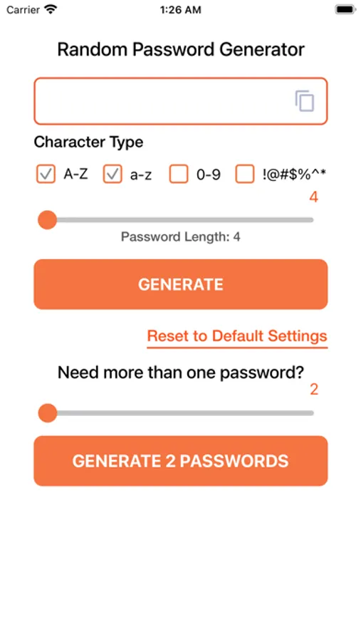 Get a secure and random password. All passwords are securely generated on your device only and are never sent across the internet!