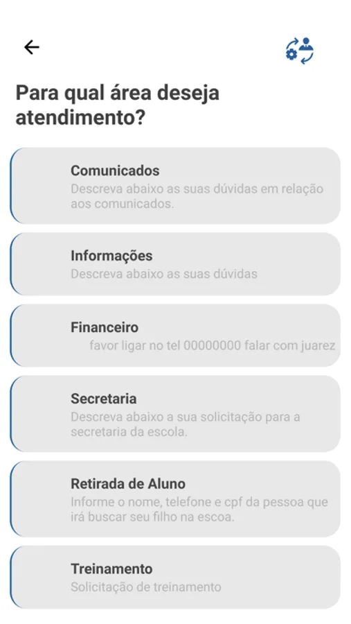 - Avisar a escola sobre compromissos externos dos alunos através da agenda pessoal dele.