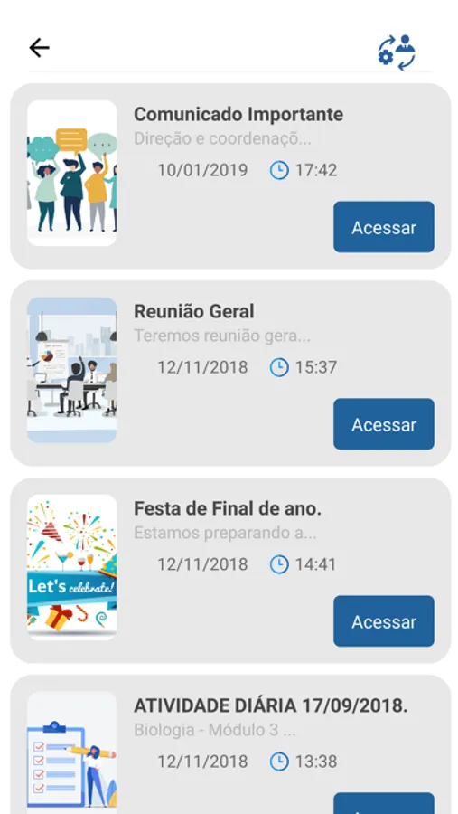 - Receber os comunicados dos alunos, assim como as notícias do dia-a-dia.