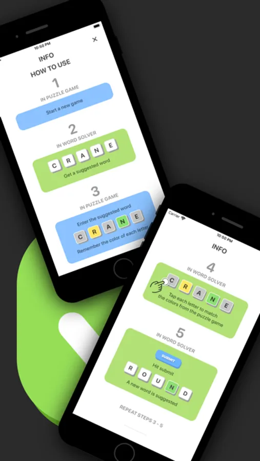 • Input the colored feedback from Wordle into WORD SOLVER by tapping each letter.