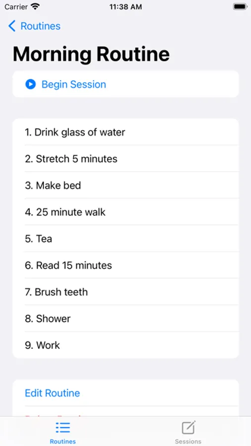 Simply create a routine, and begin a session. MyRoutines will walk you through the rest!