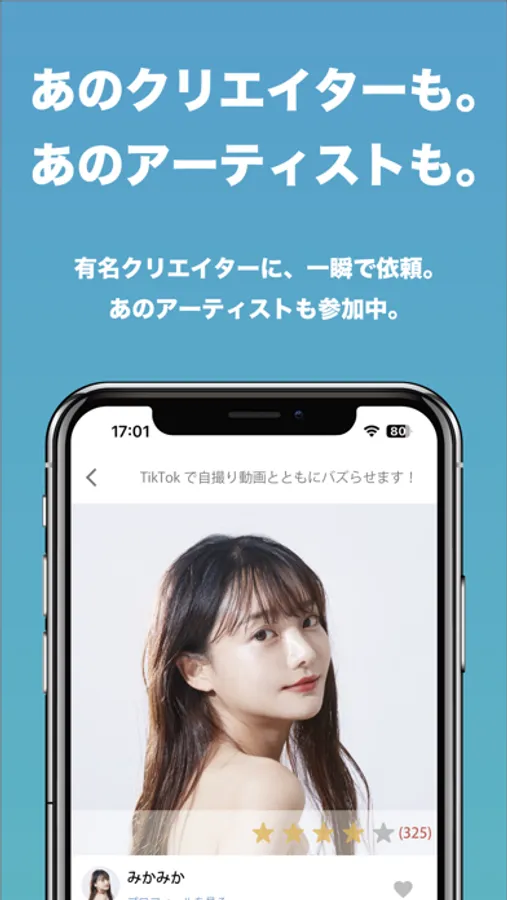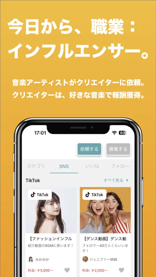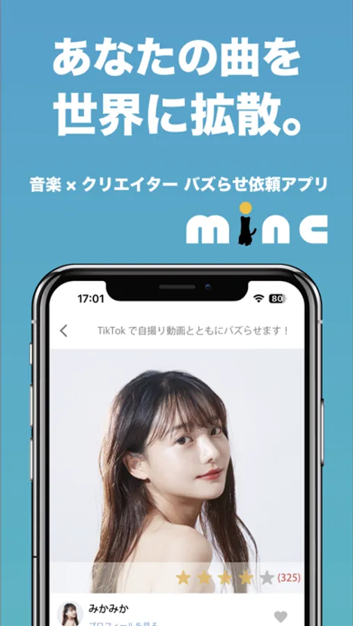 mincはたくさんの人に音楽を聞いてもらいたいアーティストがSNSでファンがいるクリエイターに対して、楽曲のPR依頼ができるサービスです。