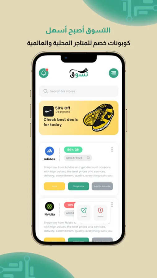 تطبيق "تسوّق" لتقييم المتاجر وأحدث كوبونات الخصم للمتاجر الإلكترونية المحلية والعالمية ستجد داخل تطبيقنا أعلى المتاجر تقييماً بجانب الحصول على كوبون " كود " خصم إضافي كما يمكنك التعليق ومشاركة الأخرين الكوبونات من خلال التطبيق