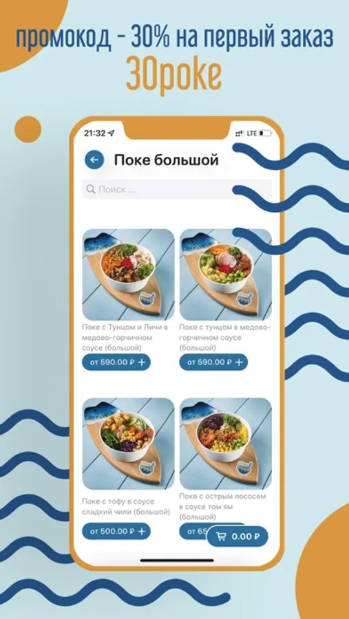 Алоха, скидка 30% на первый заказ через приложение!