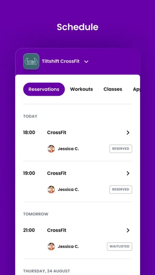 For members of Tiltshift CrossFit to reserve their place in a class, sign up for gym events, and general account management like updating headshots and credit card on file.