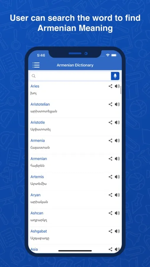 4- In our Armenian dictionary and translator app, users can search over 140000+ words to convert English to Armenian and Armenian to English.