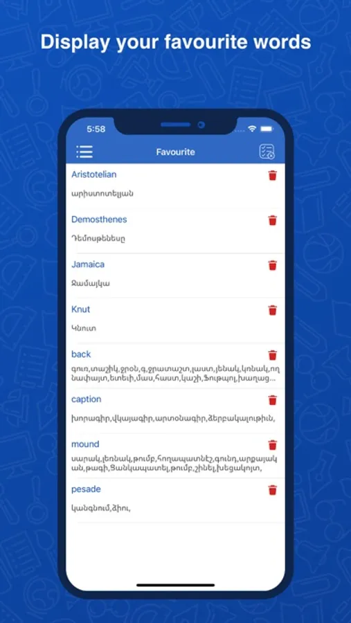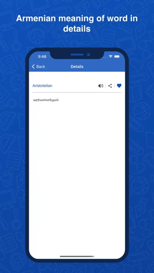 7- You can create a favourite list in our app of the translated words and can share it with anyone in their English and Armenian meaning.